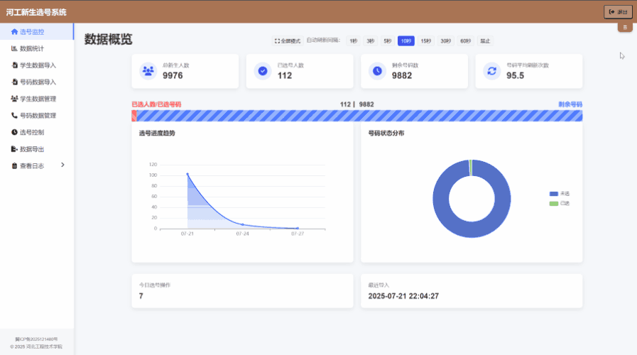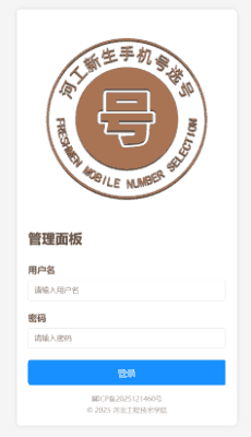 河北工程技术学院新生手机号选号系统是为新生提供手机号码选择服务的平台,系统分为管理后台和微信小程序两部分。