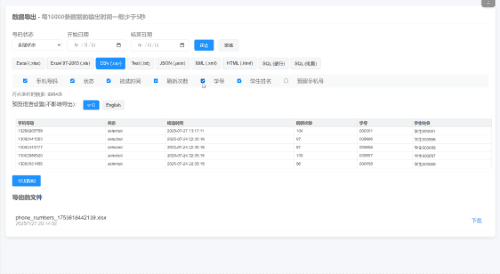 多格式支持 - 支持导出为Excel、CSV、JSON等共8种格式