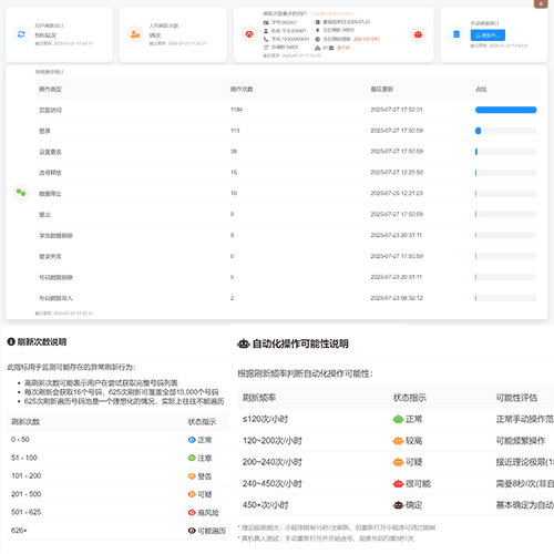 数据概览 - 显示学生总数、已验证学生数、已选号学生数等关键指标